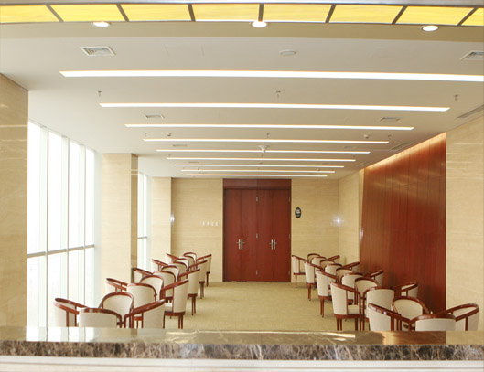 本案例的着重点在于吊顶,墙面造型,以及每个功能区域的风格定位 墙面深色的红木作为主要突出的颜色,分别在各个功能区域里加以运用 使空间整体显得统一。吊顶的不断变化,又使的每个空间区域相互独立。 |  | 项目名称:龙善环保公司 项目地址:深圳 设计风格:现代 装饰材料:大理石、抛光砖、塑胶板、板材、玻璃